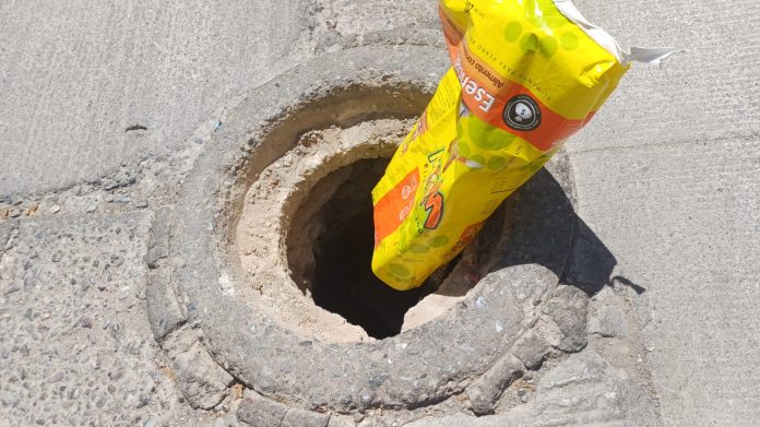 Vecinos de los alrededores de este problema, piden a las autoridades municipales o a una empresa especializada en destape de drenajes y desazolve para evaluar y solucionar la situación. Y para evitar accidentes provisionalmente se tiene señalado con una bolsa de plástico.