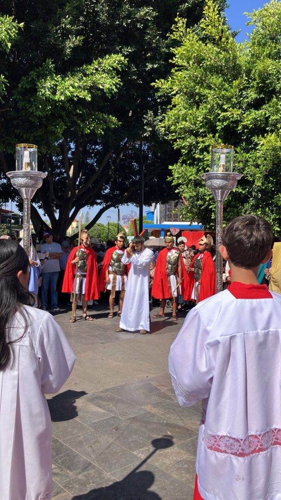 A lo largo del día, actores voluntarios recrearon las estaciones que narran el camino de Jesucristo hacia el Calvario, en escenificaciones que recorrieron calles y atrios de templos. Estas representaciones, consideradas parte del patrimonio cultural intangible de la región, reflejan el arraigo de la fe y la organización comunitaria que caracteriza a las celebraciones de Semana Santa en el estado.