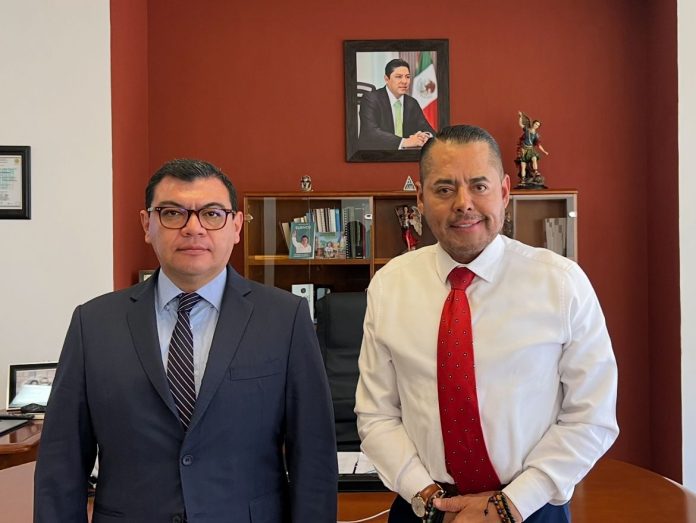 Se reúnen el Coordinador Estatal de Protección Civil, Mauricio Ordaz Flores y el Fiscal General de la República en San Luis Potosí, Gabriel Campos Piña, para analizar y emprender estrategias conjuntas en el manejo seguro de combustibles.