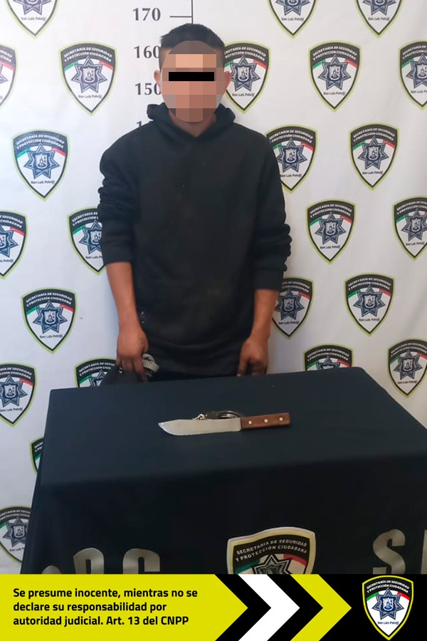 El hecho se registró cuando los agentes municipales circulaban sobre la calle Biznaga de la colonia Los Magueyes cuando notaron la presencia de un hombre en la vía pública, el cual sostenía visiblemente un cuchillo en la mano.