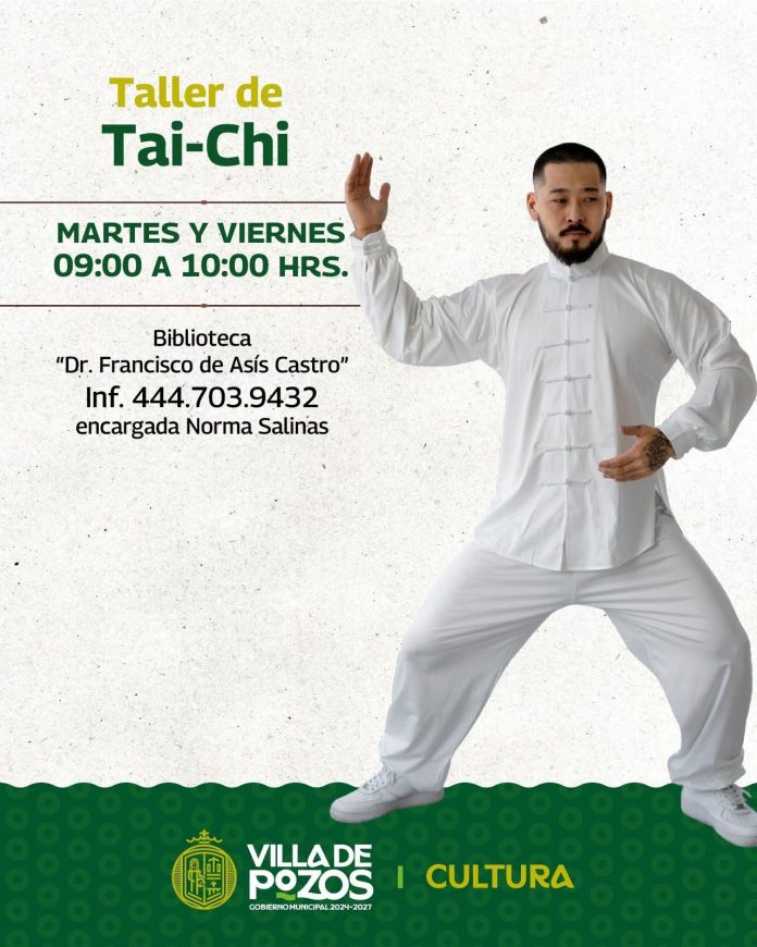 Con el objetivo de fomentar el bienestar integral y ofrecer alternativas saludables para la población, el Gobierno Municipal de Villa de Pozos, a través de la Dirección de Cultura, invita a la población a integrarse al taller de Tai-Chi, una disciplina de origen chino que combina movimientos suaves, respiración consciente y concentración mental.