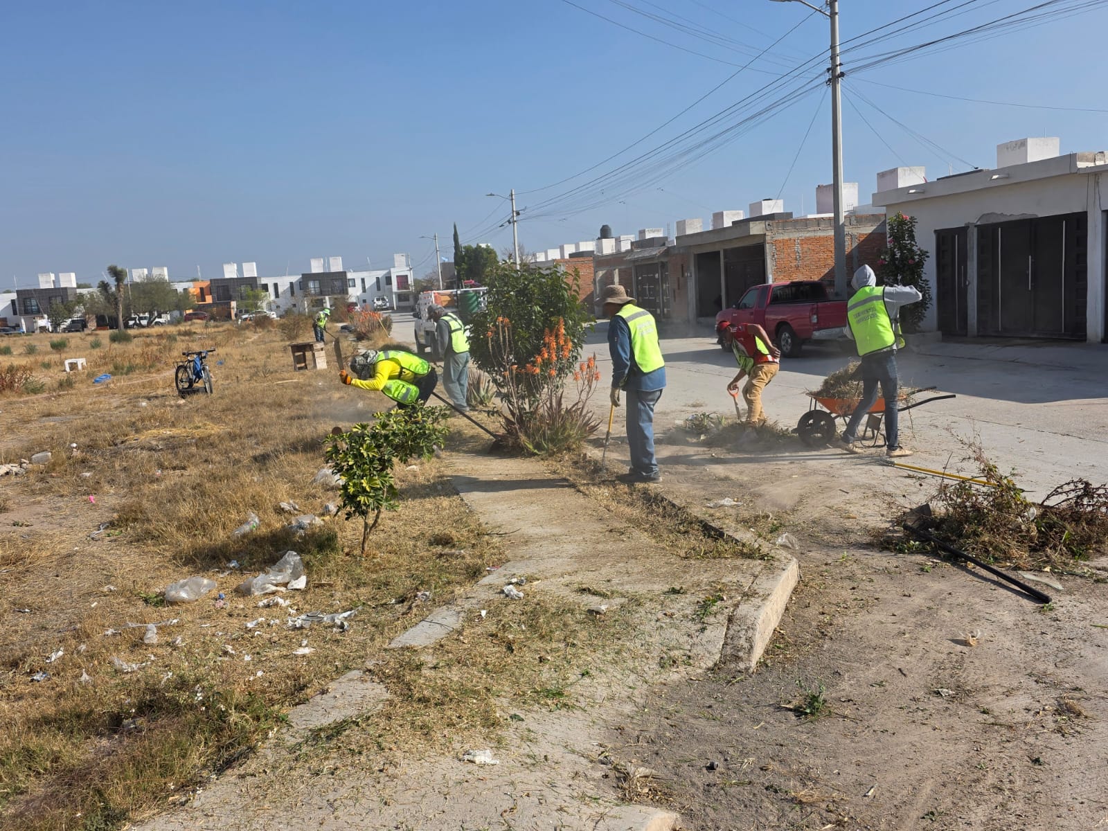 En atención a las solicitudes de las y los vecinos del fraccionamiento Herradura, la Dirección de Respuesta Ciudadana de Villa de Pozos llevó a cabo trabajos de rescate y limpieza en el área común de dicha zona, con el objetivo de mejorar las condiciones del espacio y brindar mayor seguridad a quienes lo utilizan.